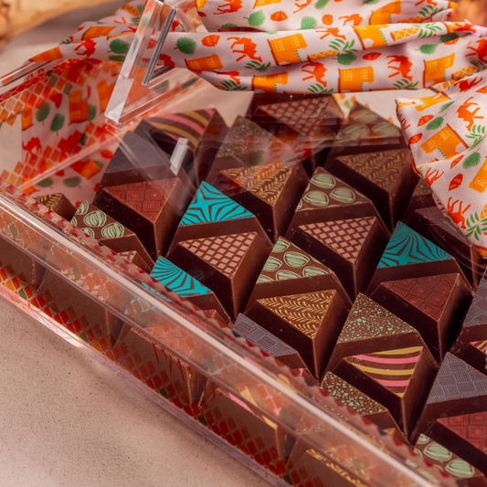 The signature triangular shape of Vivid Chocolate is not just a design choice; it's a symbol of distinction. The brand's commitment to uniqueness extends beyond appearance, creating chocolates that stand out in taste and presentation.